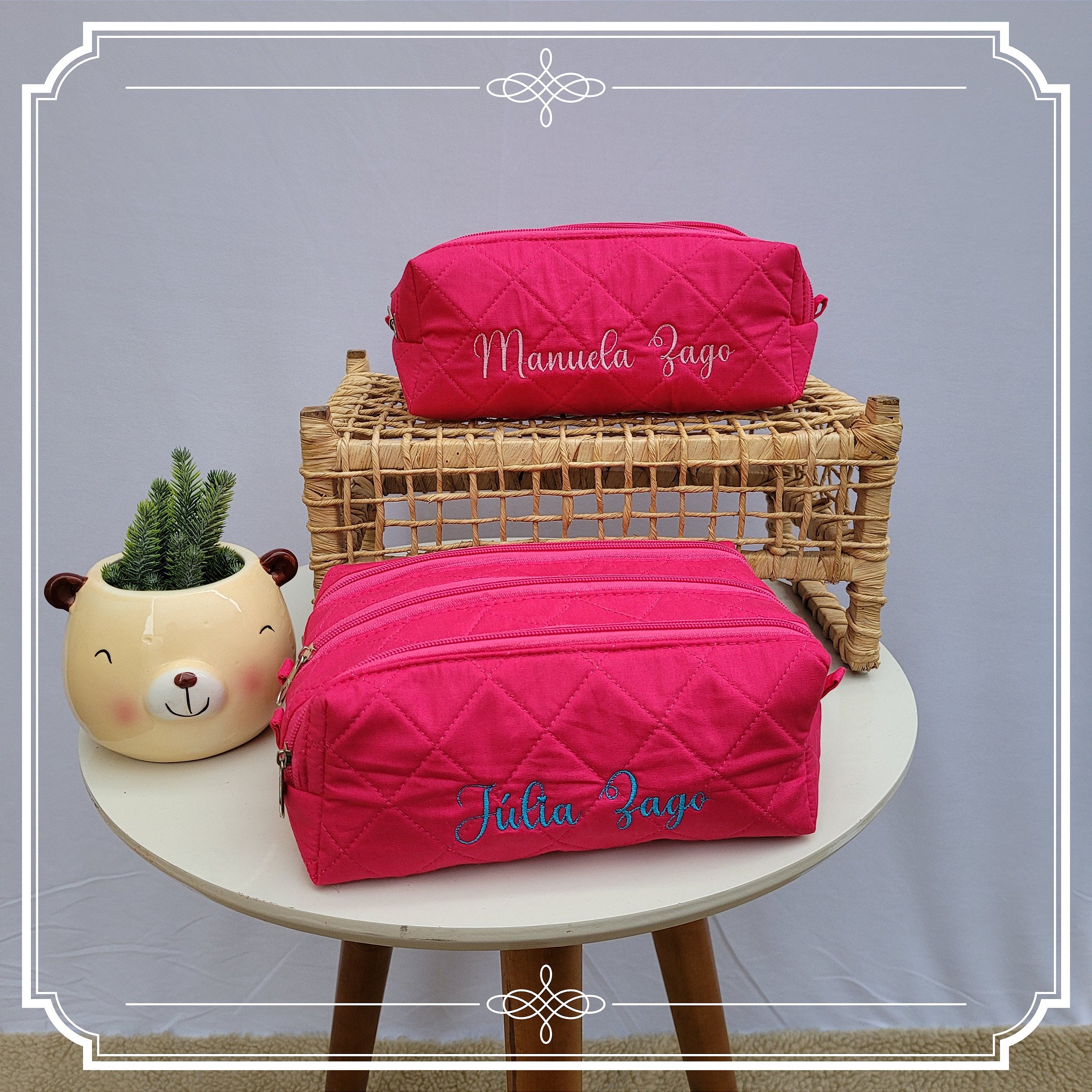Estojo escolar feitos artesanalmente em sintético de alta qualidade, ou de tecido 100% algodão, o que torna a sua peça única e exclusiva. Feito no Brasil.